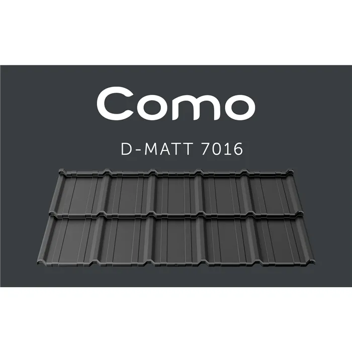 Como je novinka v plechových střešních krytinách. Její snížený profil byl navíc dvakrát ohnutý, což činí plochu ještě plošší a současně udržuje jedinečnou tuhost jednotlivých tabulí.