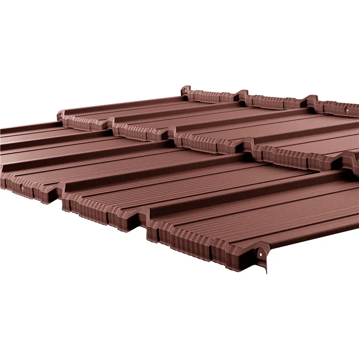 Je to náš patent na střechu, který usnadňuje montáž a zkracuje dobu práce pokrývače. Hotové otvory umožňují přesné spojení tabulí a správně vyprofilované dosedací plochy pro šrouby zajistí zajistí dokonalou přilnavost šroubu k povrchu tabule a tím i pevné a utěsněné spoje.