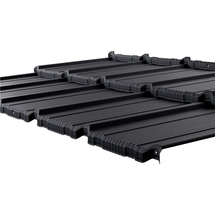 Díky použití speciálních ukončení podélných spojů na střeše jsou tyto spoje neviditelné a tabule je pevně upevněna. Tato jedinečná kombinace estetiky a pevnosti má další praktický důvod - lépe odvádět vodu z plochy.