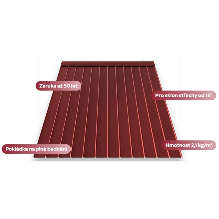 Hlavní přednosti této plechové krytiny jsou nízká hmotnost, snadná manipulace a velmi rychlá pokládka.